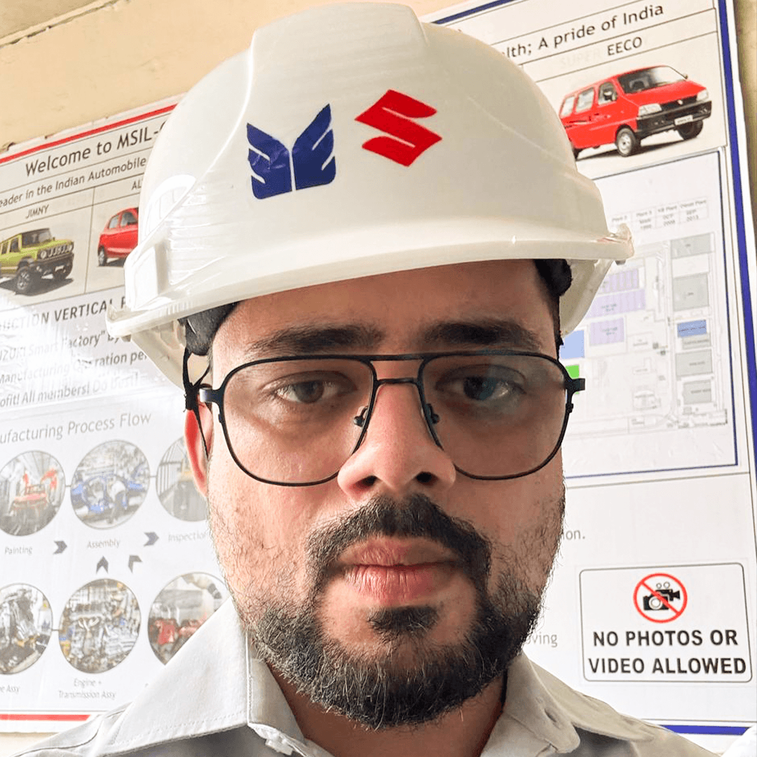 Abhinav Sharma wearing a safety helmet, , capturing a moment from his professional journey.